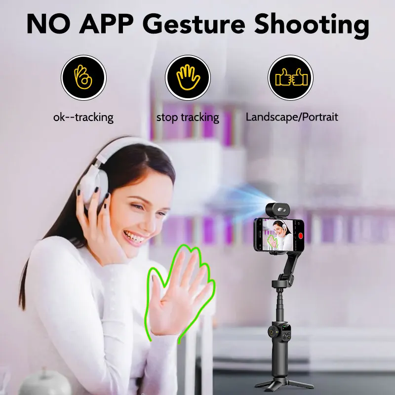 HQ6 3-Axis Gimbal Handheld Stabilizer for Cellphone, with Fill Light, Face Tracking, for Android iPhone Anti Shake Video Record
