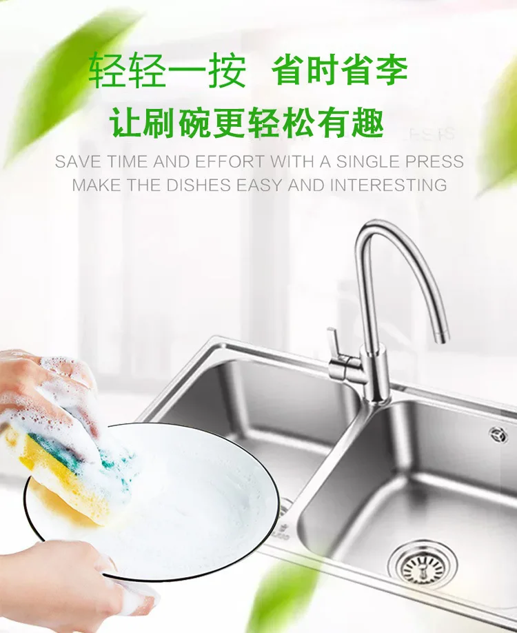 Convenient and Versatile:Â 2-in-1 soap dispenser making dishwashing a breeze. The push-type automatic liquid box ensures easy dispensing of soap, while the built-in brush allows for efficient cleaning.